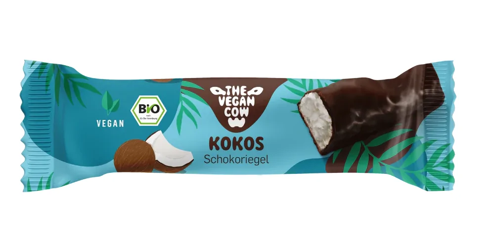 Batonul BIO de ciocolată cu cocos de la Vegan Cow este o gustare vegană delicioasă care combină aroma exotică a nucii de cocos cu gustul intens al ciocolatei.