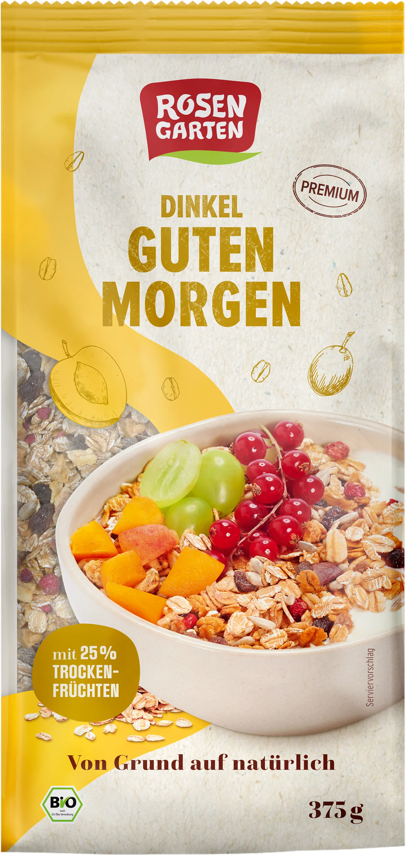 MUSLI BIO DIN GRAU SPELTA CU 25 % FRUCTE USCATE ROSENGARTNER 375 gr