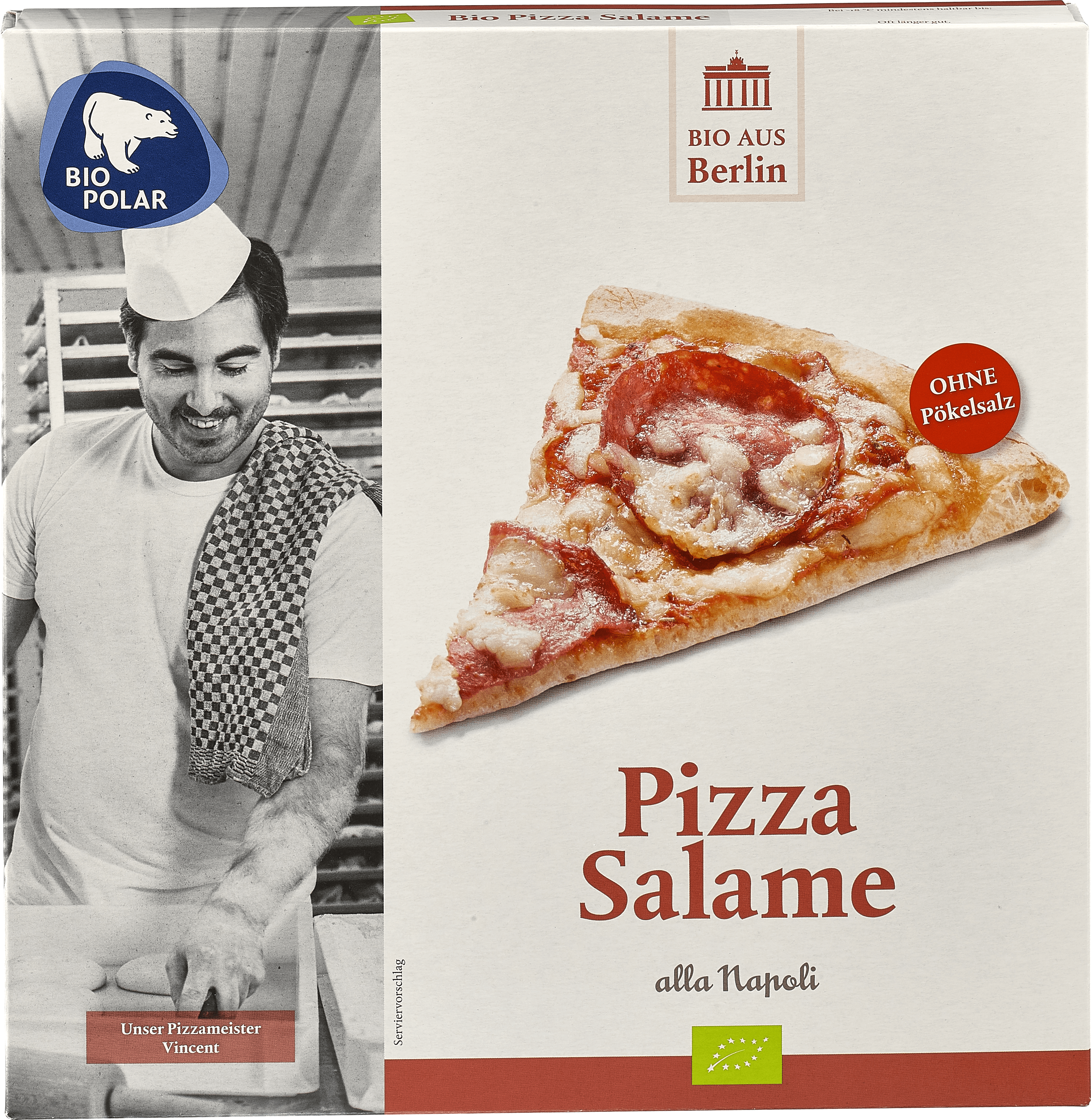 Ingrediente: ALUAT * (faina de GRAU *, apă, aluat de drojdie: faina de GRAU*, apă, drojdie], sare de mare, ulei de măsline extravirgin, drojdie), roșii pasate* 21%, MOZZARELLA * 11.5%, salam * 7% (carne de porc *, bacon de porc*,sare de rocă, piper*, usturoi *, coriandru *, nucșoară *, schinduf *, păstârnac *, keustean*,extract de piper*,colorant: pudră de sfeclă rosie* , antioxidant : extract de rozmarin*,dextroză *, culturi de maturare, fum de lemn de fag), apă, sare de mare, ulei de măsline extra *