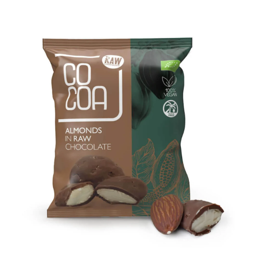 Migdale BIO în ciocolată RAW vegan 70 g – Cocoa