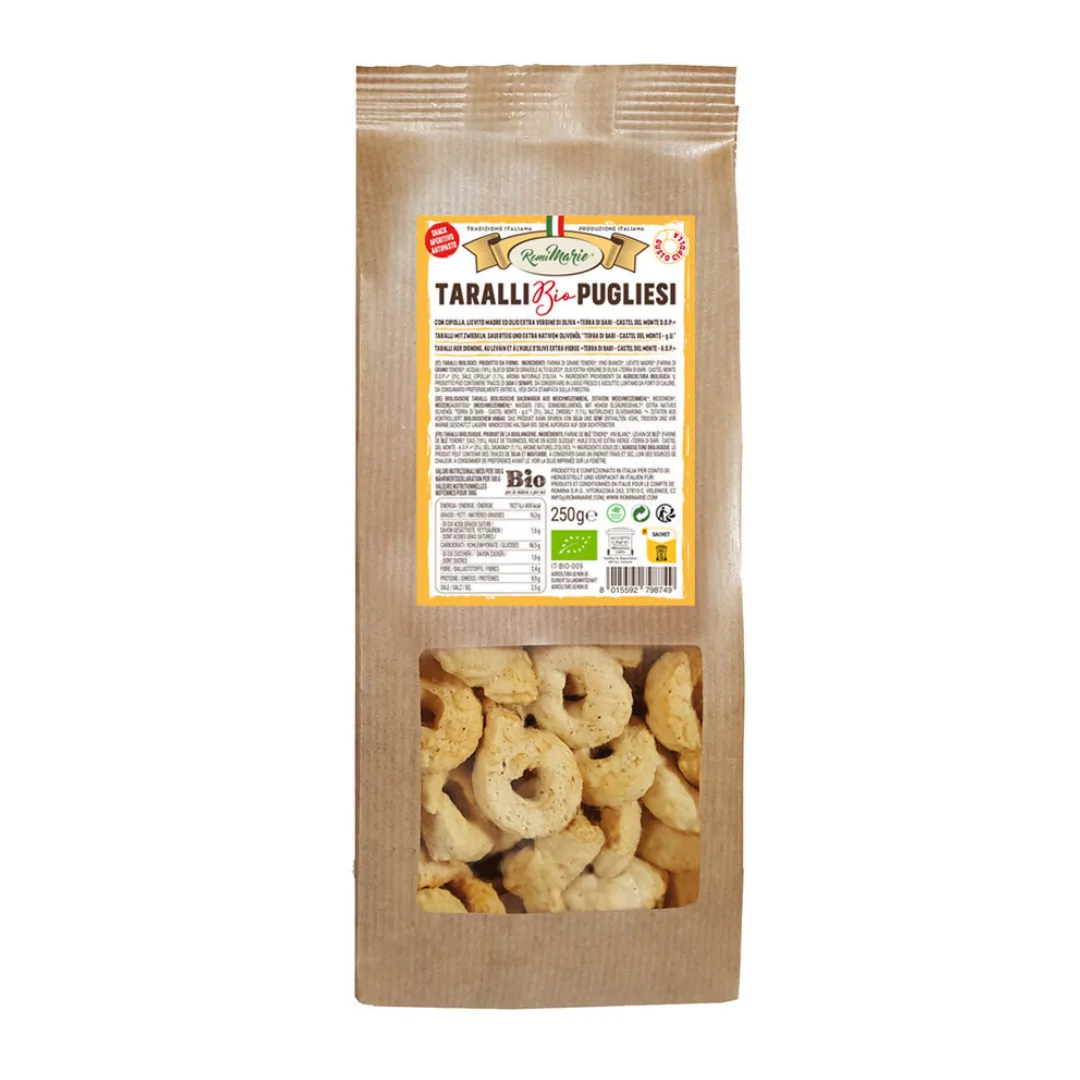 Covrigeii clasici de la RomiMaries sunt fabricati înregiune Apulia, din sudul Italiei folosind materii prime pur regionale de la fermieri ecologici din zona imediată.
