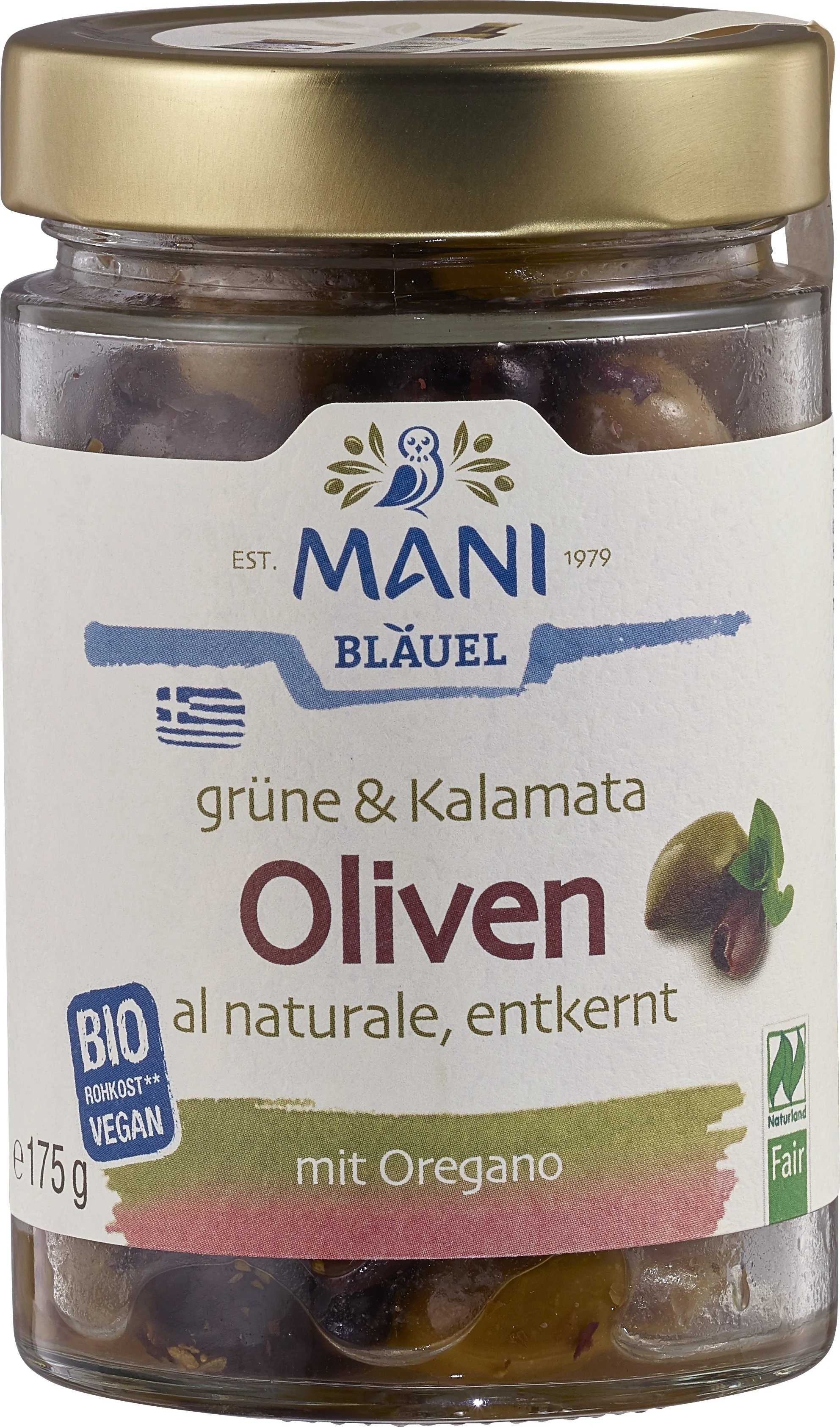 Mixul de măsline BIO Mani-Bläuel reunește selecții atent alese de măsline ecologice din Grecia, recunoscute pentru gustul lor autentic și calitatea premium.