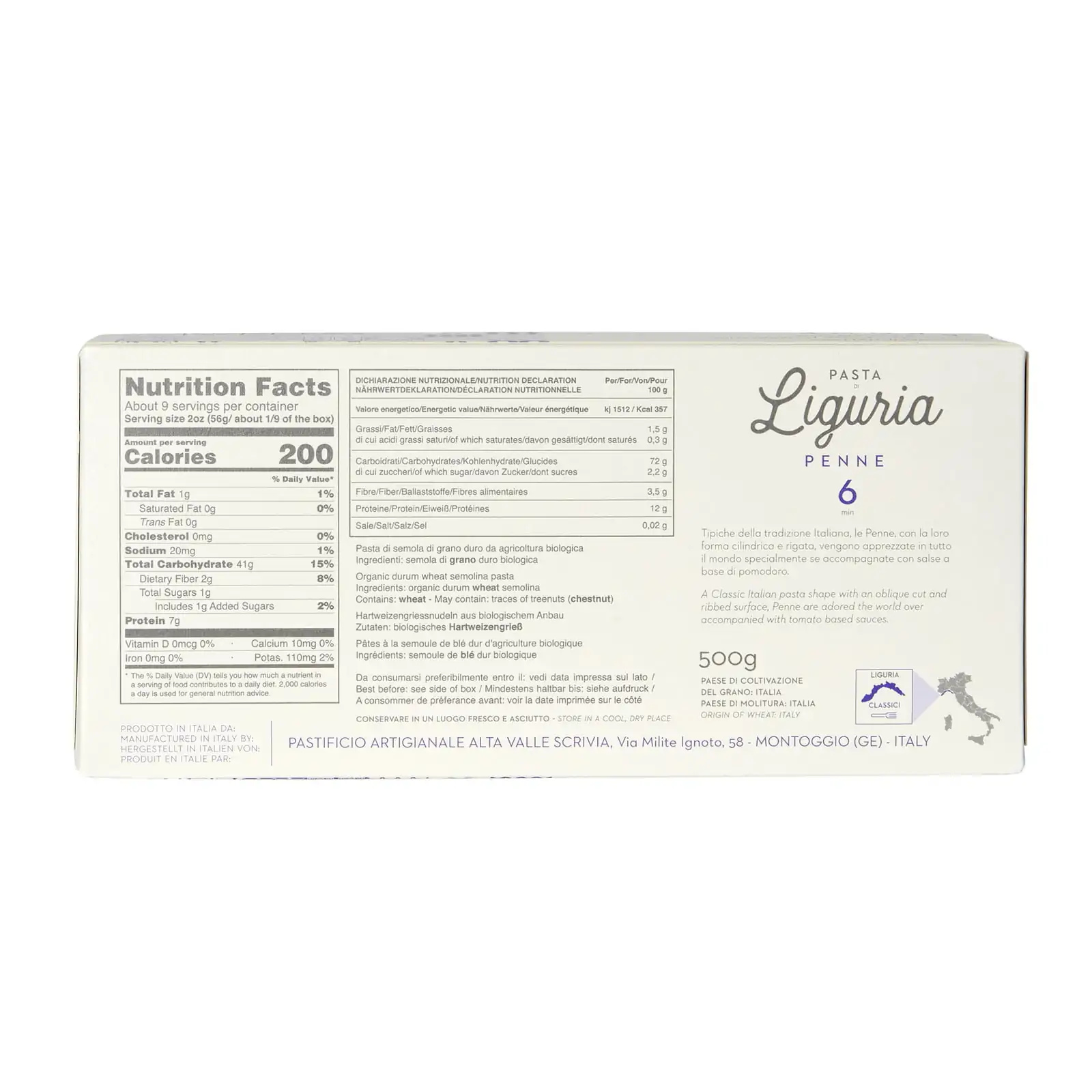 Pasta di Liguria este o pastă artizanală autentică italiană, regională, făcută de familia Minaglia din orașul lor natal din munții Apenini din Liguria. Formele unice descriu tradițiile culinare vechi de secole ale uneia dintre cele mai sănătoase bucătării locale din Italia și ale celor mai frumoase regiuni de coastă.