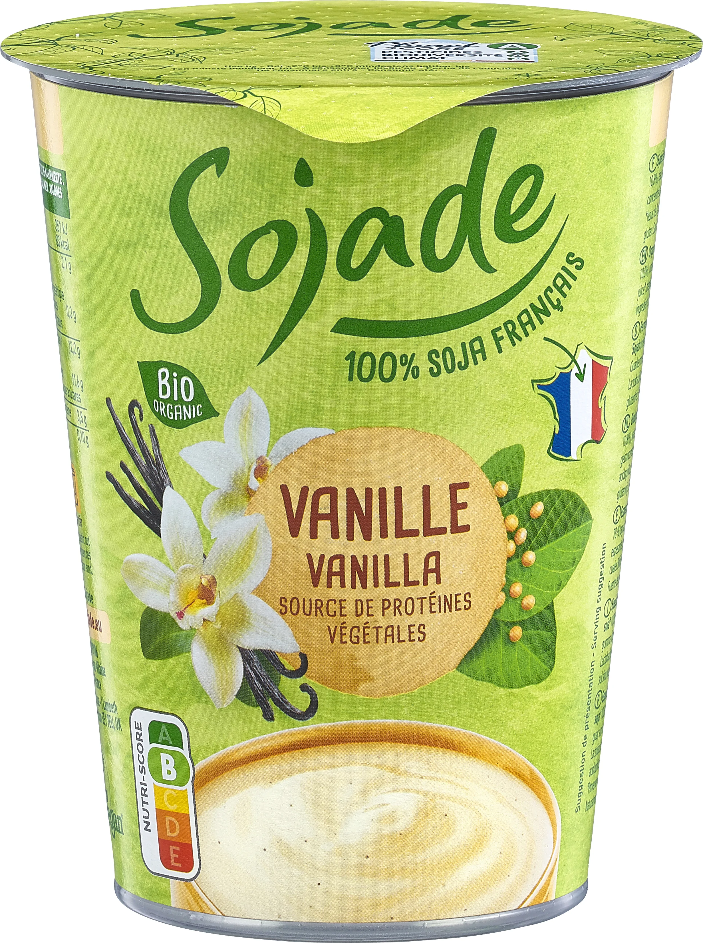Ingrediente:BĂUTURA DE SOIA* 78% (apa, SOIA* 10.8%),apa, zahăr brut din trestie*°, amidon de porumb*, aromă naturală de vanilie*, agent de îngroșare: gumă de guar, suc concentrat de lămâie*, păstăi de vanilie* macinate, culturi vii selectate de Bifidus și Lactobacillus Acidophilus