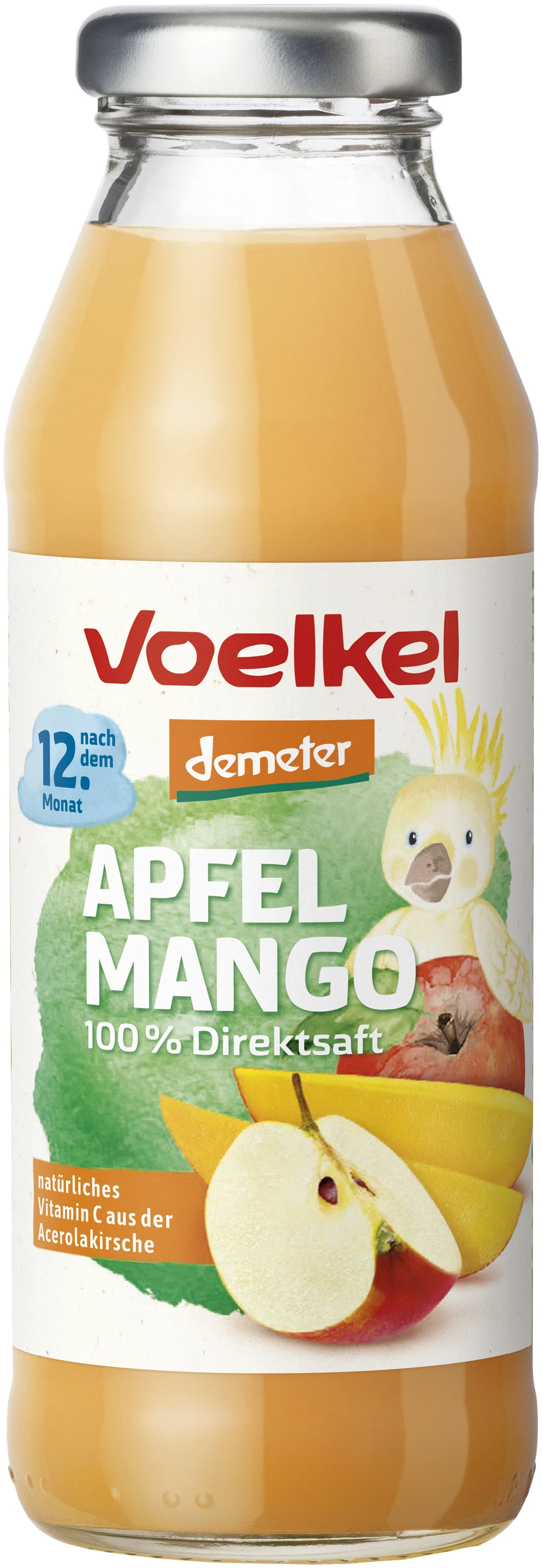 Sucul – 100% fructe presate la rece din ingrediente de calitate Demeter – combină mere aromate, mango exotic și pulpă de acerola pentru a crea o plăcere unică.