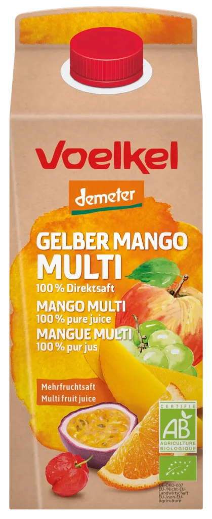 Sucul BIO mix de fructe cu mango galben Voelkel este o băutură naturală, obținută exclusiv din fructe provenite din agricultură ecologică.
