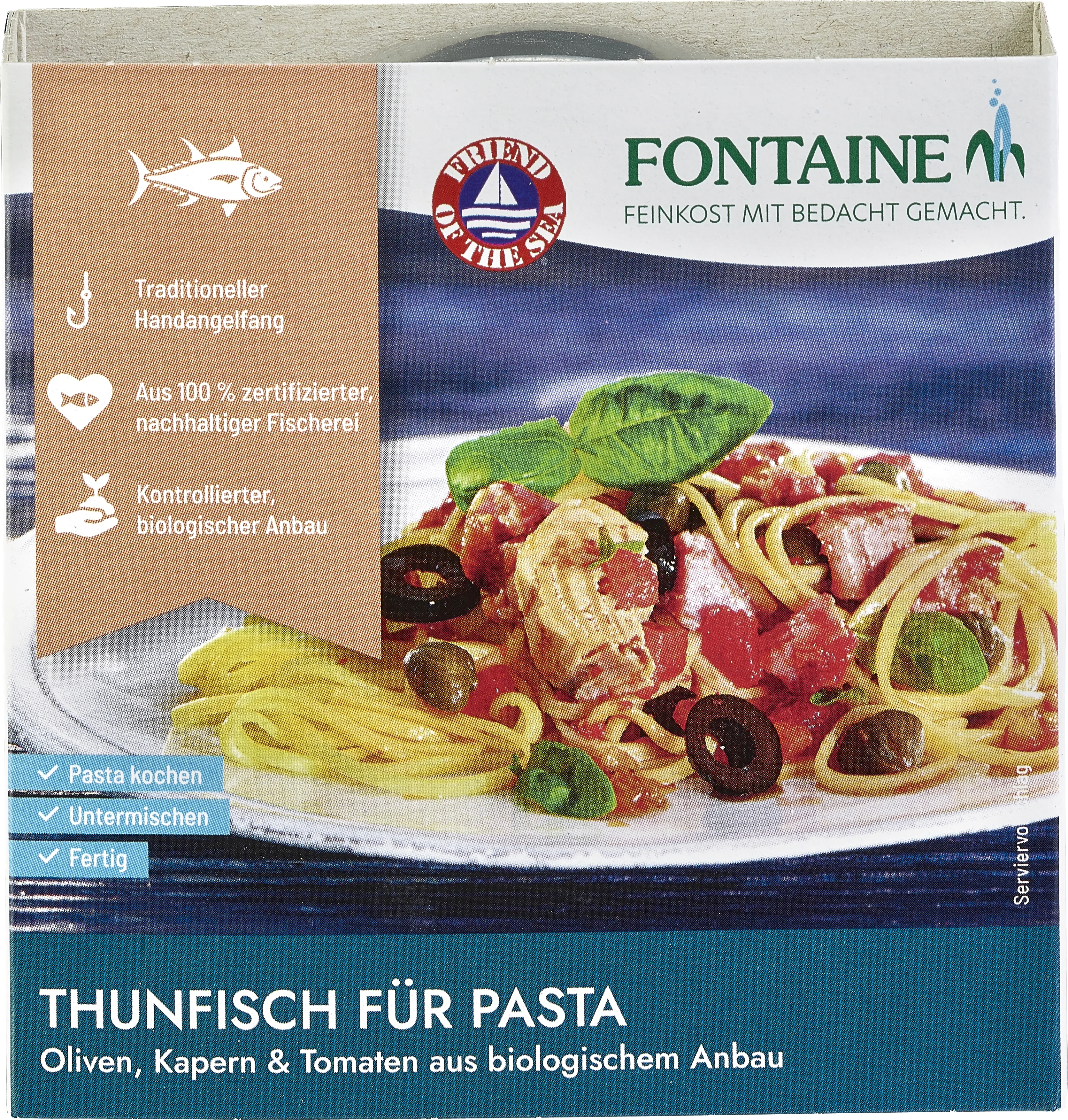 Ingrediente: TON (Katsuwonus pelamis) (33%), legume* în proporții variate (41% – bucăți de roșii*, măsline negre*, capere*), ulei de măsline* (18,5%), apă, sare de mare, oregano *, condimente*, coajă de lămâie*, zahăr integral din trestie*